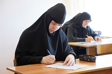 В сдаче междисциплинарного экзамена участвовали: пять монашествующих с игуменией Александрой (Ситниковой) из Выксунского Иверского женского монастыря, две насельницы с игуменией Никоной (Желяковой) из Абабковского Николаевского Георгиевского женского монастыря, две сестры из Дальне-Давыдовского женского монастыря, а также настоятельница Свято-Троицкого Макарьевского женского монастыря Лысковской епархии игумения Нина (Антонова).