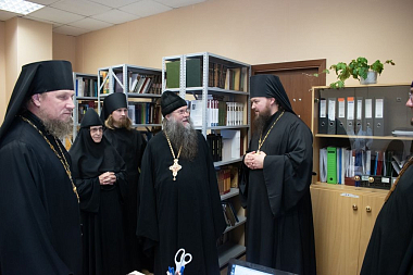 Встреча членов Комиссии с руководством курсов и преподавателями прошла на базовой учебной площадке в Спасо-Преображенском мужском монастыре Мурома. В ходе беседы были рассмотрены: учебный план, календарный график и особенности рабочих программ при изложении материала монашествующим. Члены Комиссии осмотрели учебные помещения, библиотеку и ее фонды, а также материально-техническое обеспечение, в том числе оборудование, необходимое для ведения онлайн-обучения в условиях самоизоляции.