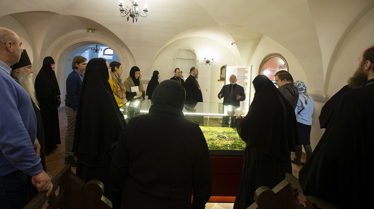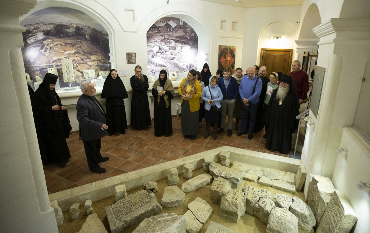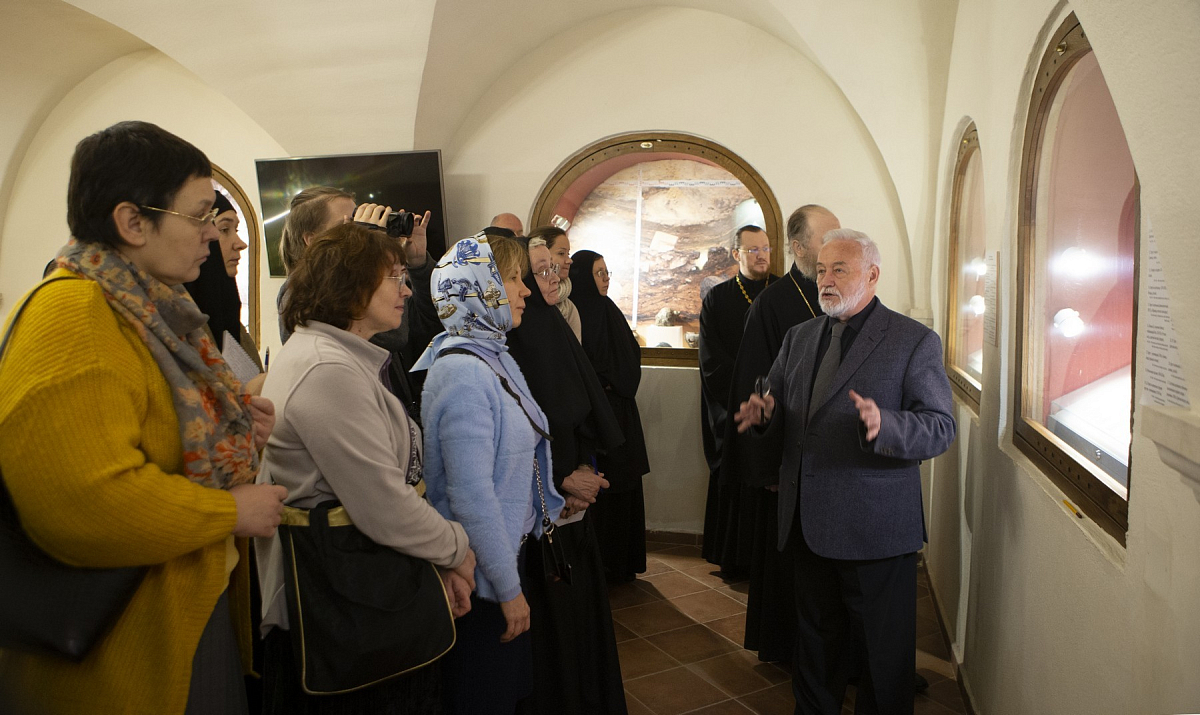 Первым выступил археолог, член-корреспондент РАН доктор исторических наук Л.А. Беляев. В лекции «Музеефикация археологии в действующем монастыре» ученый наглядно на примере Зачатьевской обители показал, что дает археология монастырю. В начале 2000-х годов никто не ожидал, что археологические работы окажут серьезное влияние на весь ход воссоздания соборного комплекса, а также позволят разрешить ряд вопросов, касающихся раннего периода истории монастыря, да и самого времени его основания. Но сегодня мы видим величественный собор в новых формах, а в подклете – уникальный церковно-археологический музей, сохранивший все фундаменты древнего храма, где к его реликвиям, древней кладке стен, ступенькам древней лестницы можно прикоснуться рукой, чтобы сильнее ощутить дыхание минувших эпох. После лекции Леонид Андреевич провел участников семинара по подземному музею и ответил на вопросы, возникшие в ходе экскурсии.