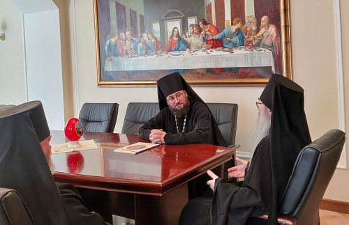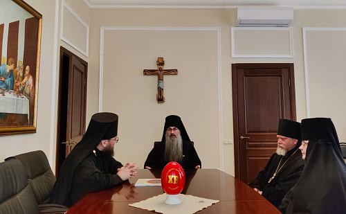 В тот же день, 13 мая члены выездной аккредитационной группы встретились с директором Центра епископом Уссурийским Иннокентием, викарием Владивостокской епархии. Беседа прошла в кабинете владыки после окончания зачета для слушателей курсов. Во встрече принял участие руководитель курсов для монашествующих игумен Антоний (Каменчук). В ходе разговора его участники обменялись мнениями об итогах первых трех лет деятельности курсов для монашествующих Владивостокской епархии, о результатах аккредитационной проверки и перспективах дальнейшего учебного процесса. Члены выездной группы отметили хорошие знания учащихся и учебно-методическую базу курсов, о чем будет предоставлен отчет в Межведомственную комиссию с целью рассмотрения и принятия положительного решения об аккредитации инспектируемых курсов.