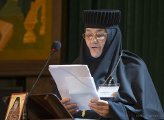 Митрополит Нижегородский и Арзамасский Георгий в докладе «Духовное руководство в свете древних монашеских традиций» напомнил собравшимся о смысле и значении Священного Предания, не только как собрания множества письменных документов, но и передачи жизни и опыта всей Церкви, вдохновляемой и ведомой Святым Духом. Духовный опыт монашеского делания является частью Священного Предания. Современному монашеству досталось богатое духовное наследство в виде аскетических творений и не прерванной традиции монашеского делания, – отметил митрополит Георгий в своем выступлении. Мудро воспользоваться этим наследством, приумножить его и неповрежденным передать монахам будущих веков – задача тех, кто подвизается ныне в ангельском образе. Возрождая монашеские традиции, необходимо воспользоваться опытом древности, оградить монашество от опасности потери живой связи с иноческим духовным наследием.