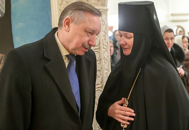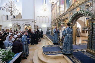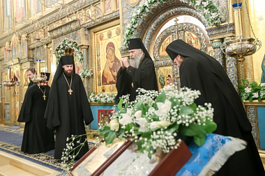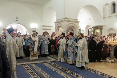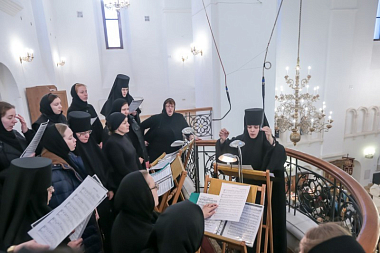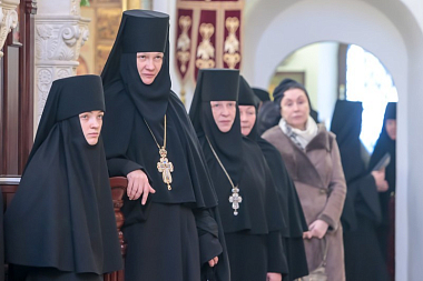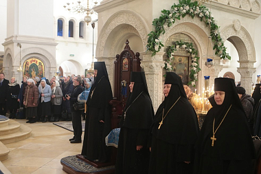 За праздничным богослужением молились: настоятельница Богородице-Рождественского ставропигиального женского монастыря Москвы игумения Викторина (Перминова); настоятельница Аносина Борисоглебского ставропигиального женского монастыря игумения Мария (Солодовникова); настоятельница ставропигиального женского монастыря Марфо-Мариинская обитель милосердия игумения Елизавета (Позднякова).