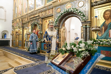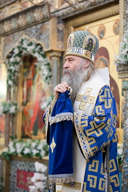 По окончании богослужения архиепископ Феогност передал всем собравшимся благословение Святейшего Патриарха Московского и всея Руси Кирилла, поздравил Заместителя Председателя Синодального отдела по монастырям и монашеству, настоятельницу Зачатьевского ставропигиального женского монастыря игумению Иулианию (Каледу), сестер обители и паломников с престольным праздником и обратился к молящимся с архипастырским словом: