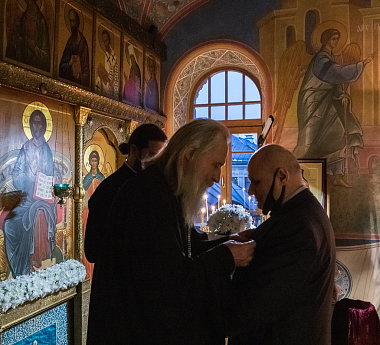 Затем состоялось награждение медалью ордена святого благоверного князя Даниила Московского Владлена Эдуардовича Писарева (в крещении Владимира), – главного инженера спецпроекта реставрации, многолетнего помощника обители. Владлен Эдуардович много потрудился во Славу Божию, в частности, неоценима его помощь в получении необходимых разрешений, строительных документов при восстановлении монастырского Собора и реставрационных работах.