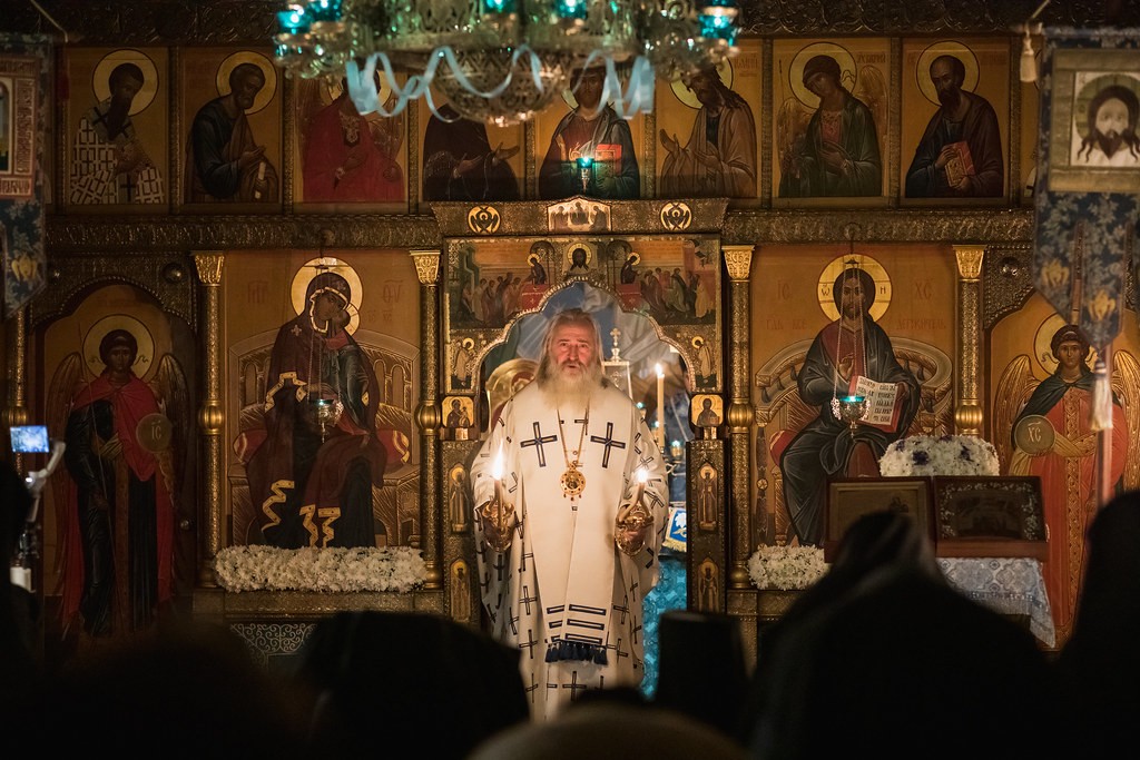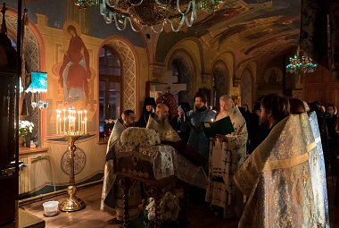 Его Высокопреосвященству сослужили клирики Зачатьевской обители.