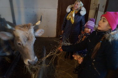 Дети в крещенский мороз с изумлением любовались цветами и огородными травами из зимней теплицы. Особое оживление вызвала возможность пообщаться с животными подсобного хозяйства.