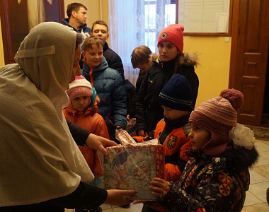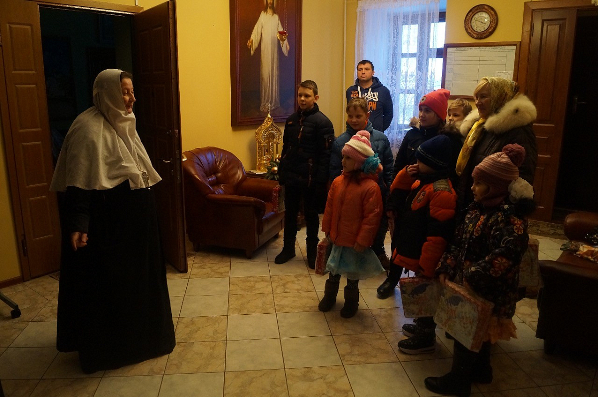 Сестры и гости исполнили друг другу святочные песни, а матушка игумения подарила всем сладкие подарки.