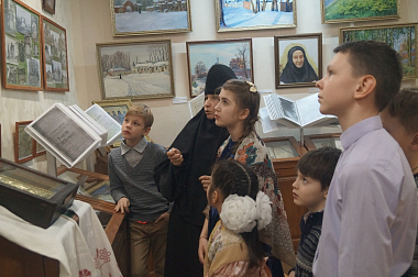 Ребята из старшей группы Детского центра поклонились святыням Троицкого собора, набрали освященной крещенской воды, ознакомились с монастырским хозяйством, пообщались с настоятельницей обители игуменией Марией (Солодовниковой) и сестрами, посетили музей.