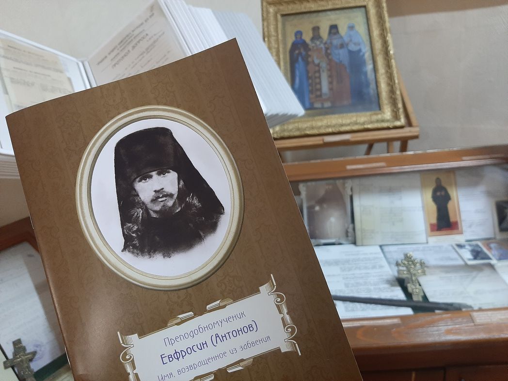 В рамках доклада состоялась презентация только что изданной Аносиным монастырем одноимённой книги, в которой собраны материалы о жизненном пути преподобномученика Евфросина. Его монашеский путь начался под руководством старца Гавриила (Зырянова) в Спасо-Елеазаровом монастыре. После эвакуации в связи с Первой мировой войной в Казань, он более 10 лет подвизался в Седмиезерной пустыни. После ее закрытия оказался в Истринском районе, где в начале 30-х годов стал настоятелем Троице-Борисоглебского храма закрытого к тому времени Аносина монастыря. Иеромонах Евфросин окормлял сестер, не покинувших родные стены после разорения обители. Вместе с ними он и был арестован в 1931 году за контрреволюционную пропаганду и противодействие коллективизации. После 6 лет концлагерей вернулся к священнослужению, но вновь был арестован и приговорён к расстрелу в ноябре 1937 года.