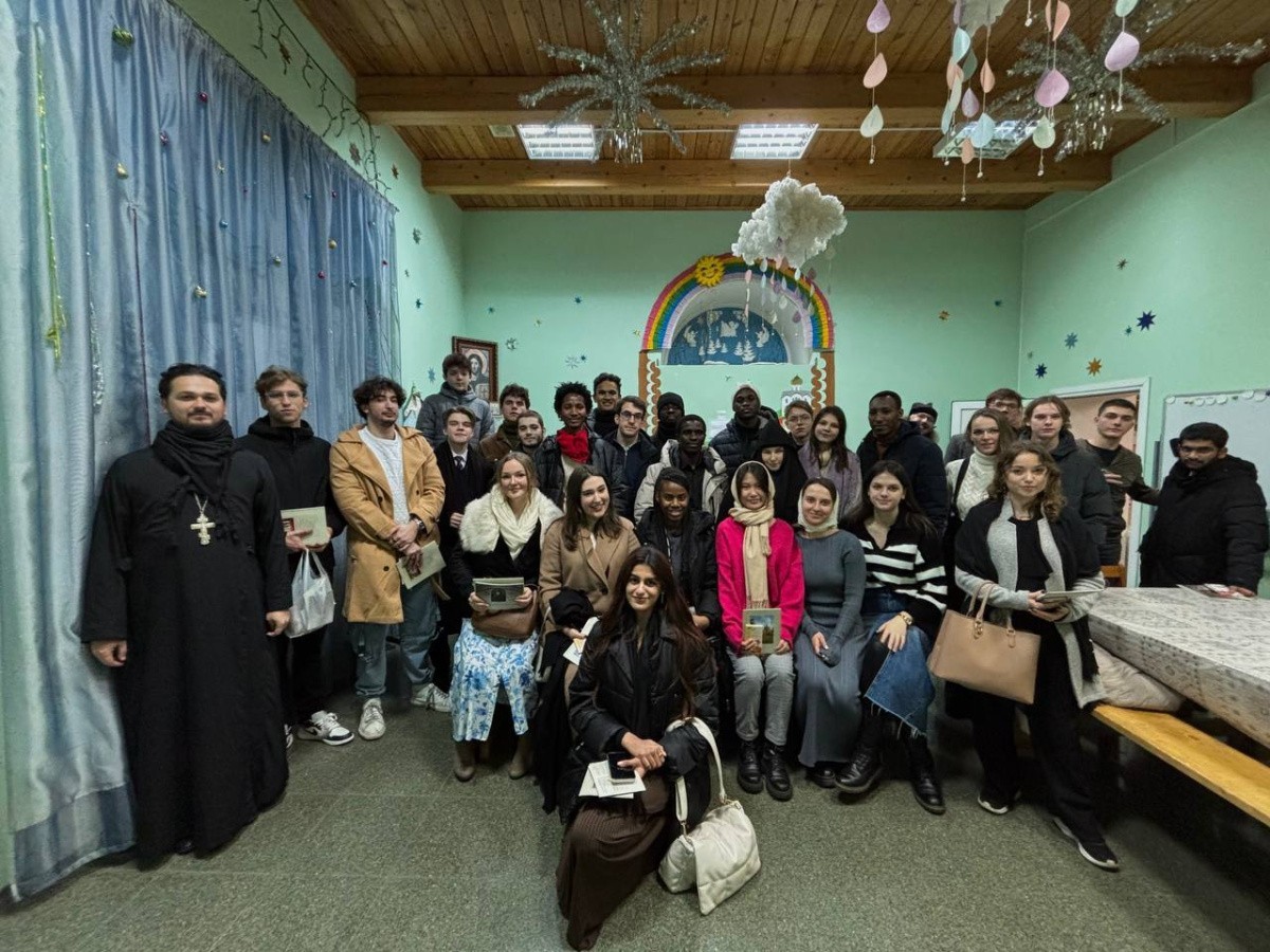 Обитель посетили студенты МГИМО и других вузов Москвы из 15 стран (Франция, Нигерия, Эфиопия, Ангола, Вьетнам, Бангладеш, Бразилия, Конго, Габон, Кения, Швеция, Индия, Маврикий, США, Сербия) во главе с помощником настоятеля по молодежной работе храма святого Александра Невского при МГИМО иереем Георгием Ермолиным.
