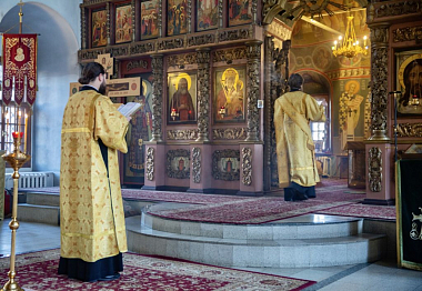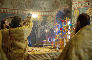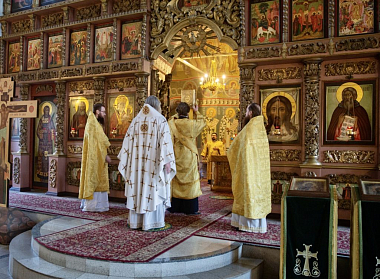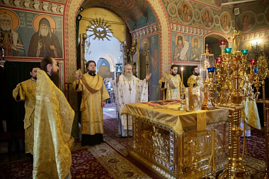 Его Высокопреосвященству сослужили наместник монастыря игумен Петр (Еремеев) и благочинный обители иеромонах Матфей (Мунтяну).