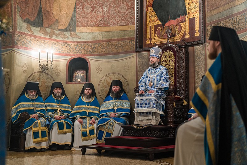 Его Высокопреосвященству сослужили сослужили насельники обители: иеромонахи Марк (Святогоров), Никодим (Бекенев), Игнатий (Шестаков), Ириней (Пиковский), Павел (Щербачев), Иона (Кудряков), Севастиан (Астафуров), Никон (Париманчук), Иннокентий (Присадков), Спиридон (Дорош), Лавр (Архипов) и Афанасий (Дерюгин); иеродиаконы Серафим (Чернышук), Феодосий (Кулиш), Агафангел (Довлатов), Платон (Кудласевич), Сергий (Демин) и Савва (Салюк).
