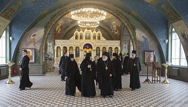 Его Высокопреосвященству сослужили: ректор Российского Православного университета, наместник Высоко-Петровского ставропигиального мужского монастыря игумен Петр (Еремеев); заведующий библиотекой МДА игумен Дионисий (Шленов); помощник председателя Учебного комитета Московской духовной академии и семинарии протоиерей Елевферий Колодезный и духовенство обители.