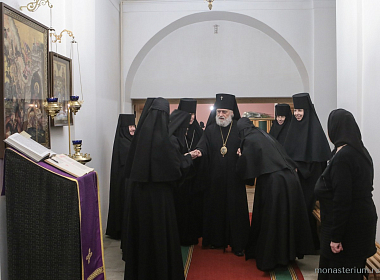 Со словами благодарности и поздравлением обратилась к Высокопреосвященнейшему Владыке настоятельница обители игумения Викторина.