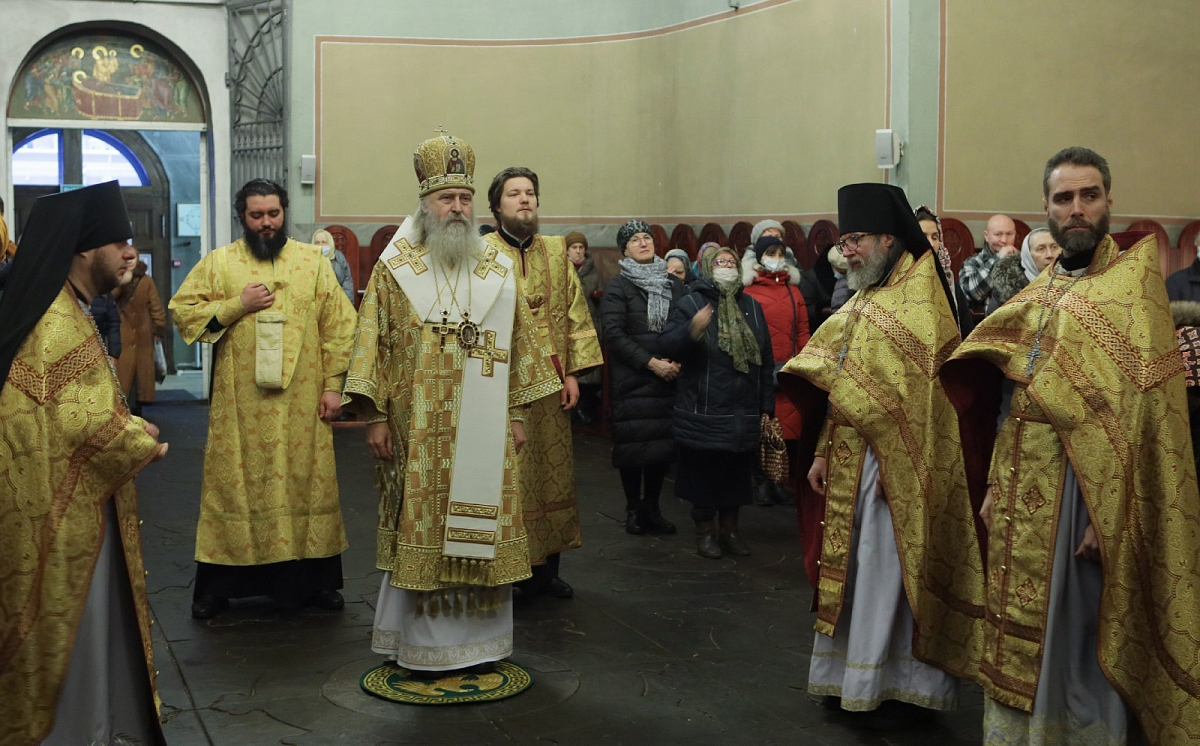3 января 2021 года, в Неделю 30-ю по Пятидесятнице, пред Рождеством Христовым, святых отец, день памяти святителя Петра, митрополита Киевского, Московского и всея Руси, чудотворца, председатель Синодального отдела по монастырям и монашеству, наместник Донского ставропигиального мужского монастыря архиепископ Каширский Феогност совершил Божественную литургию в Большом соборе Донского ставропигиального мужского монастыря Москвы.