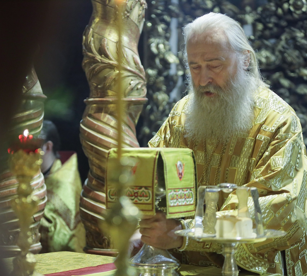 Его Высокопреосвященству сослужила братия обители в священном сане.