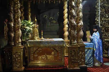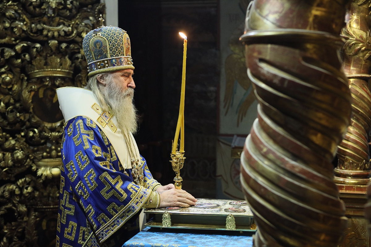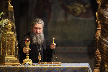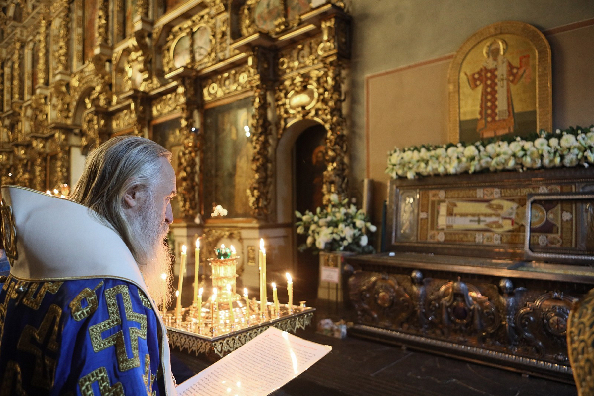 В завершение богослужения Преосвященнейший владыка с братией обители совершили молебен перед мощами святителя Тихона.
