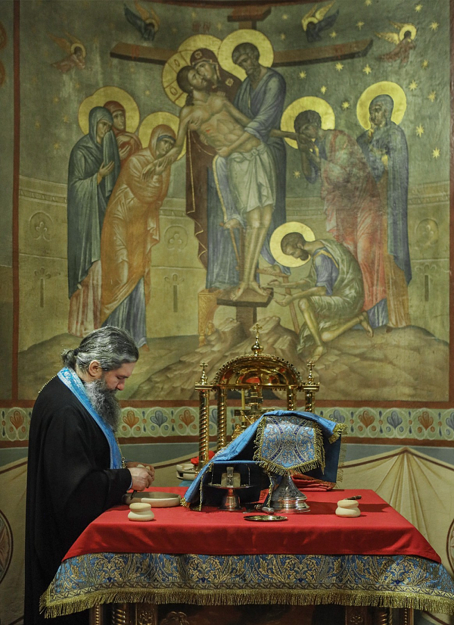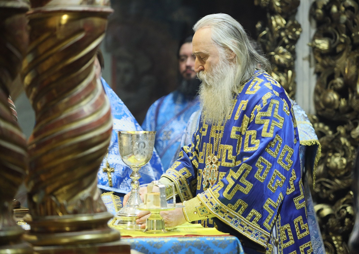 Позднюю Божественную литургию возглавил наместник Донского монастыря епископ Бронницкий Евгений.
