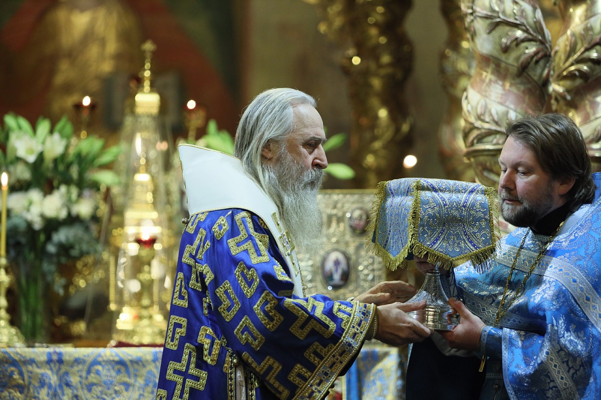 По окончании богослужения духовенство совершило славление у мощей святителя Тихона.
