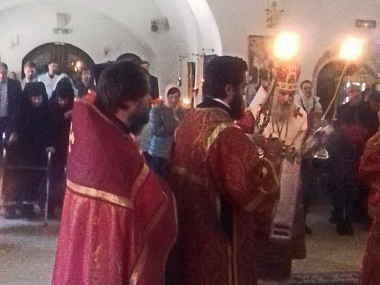 Его Высокопреосвященству сослужило монастырское духовенство.