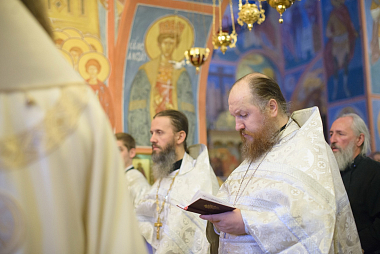 Его Высокопреосвященству сослужили: благочинный Троице-Сергиевой Лавры архимандрит Павел (Кривоногов); настоятель храма в честь Явления Пресвятой Богородицы преподобному Сергию Радонежскому Лаврского подворья иеромонах Феофилакт (Кириллов); братия Лавры в священном сане; клирики храма иереи Александр Пивняк и Евгений Веселов, а также духовенство в диаконском чине.