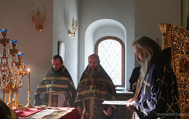 Его Высокопреосвященству сослужило монастырское духовенство, а также братия Троице-Сергиевой лавры в священном сане.