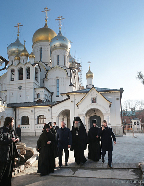 За богослужением молились: заместитель председателя Синодального отдела по монастырям и монашеству, настоятельница Зачатьевского ставропигиального женского монастыря игумения Иулиания (Каледа) с сестрами; настоятельница Богородице-Рождественского ставропигиального женского монастыря игумения Викторина (Перминова), а также почетные гости, прибывшие по приглашению Высокопреосвященнейшего владыки на архиерейское богослужение, и постоянные прихожане и паломники монастыря.
