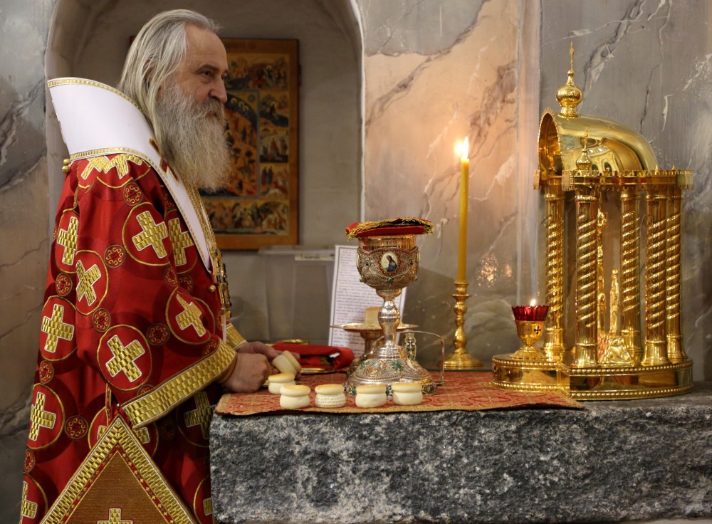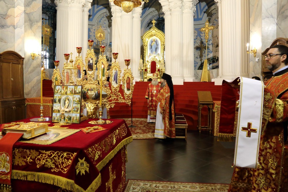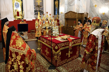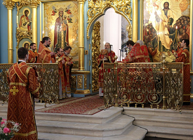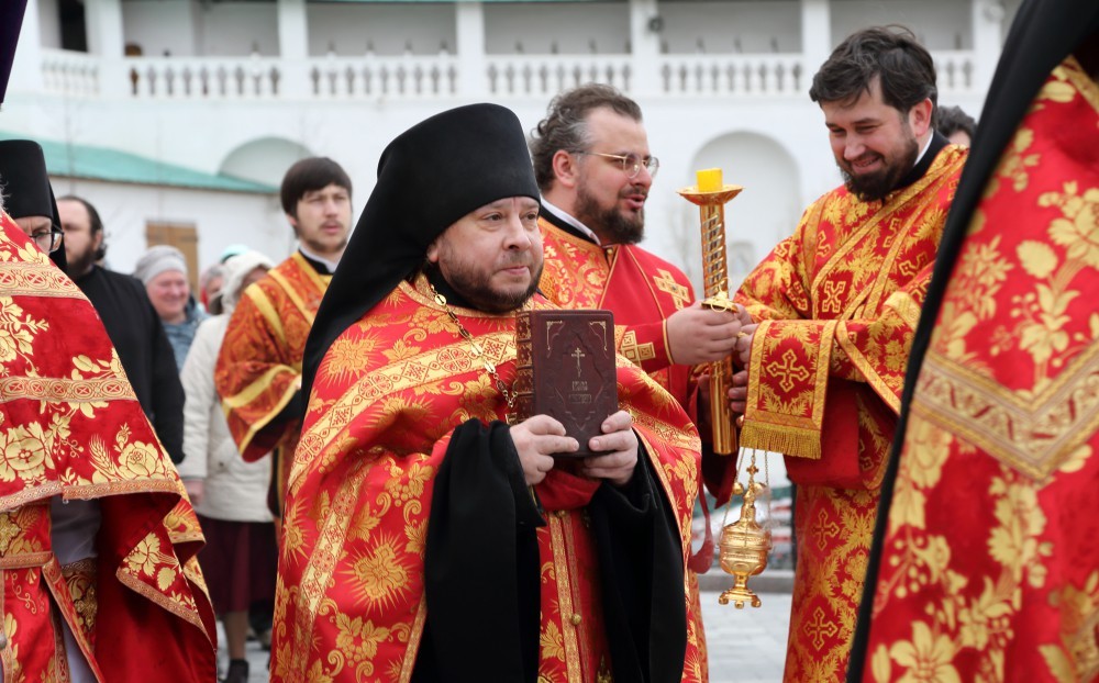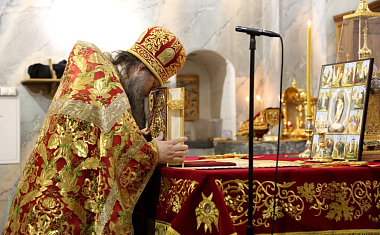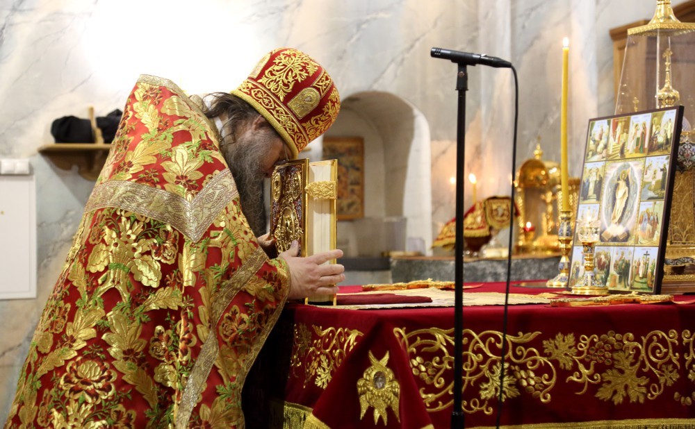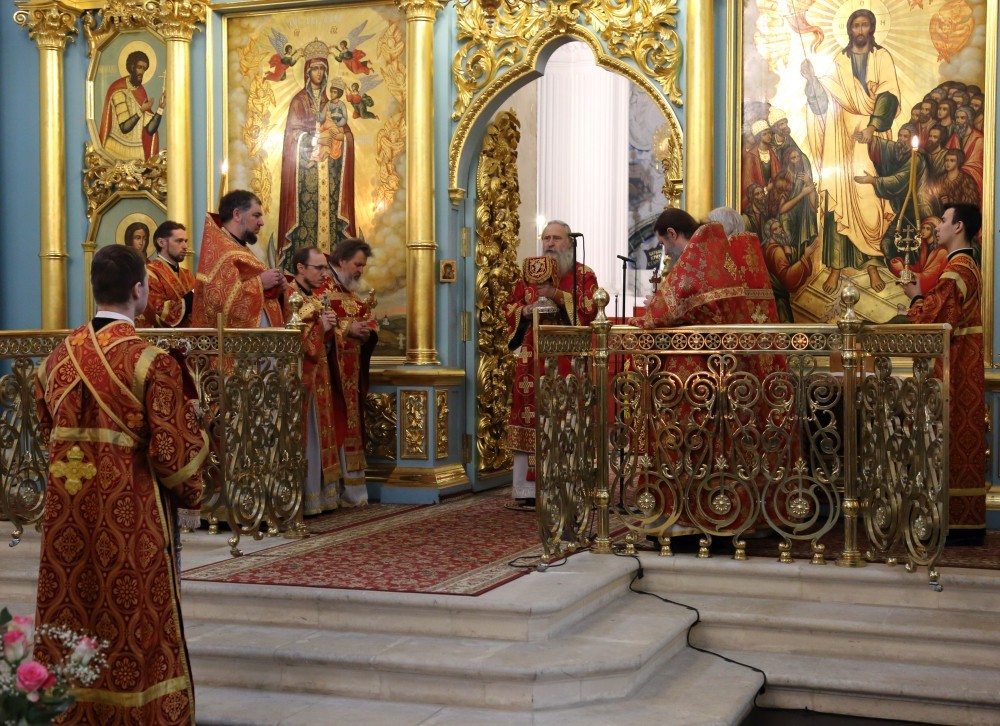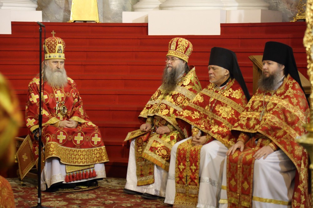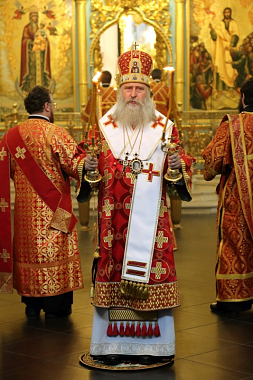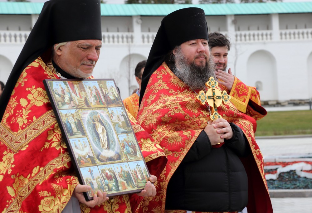В Воскресенском соборе обители Его Высокопреосвященству сослужили наместник Воскресенского Ново-Иерусалимского монастыря архимандрит Феофилакт (Безукладников) с братией обители в священном сане.