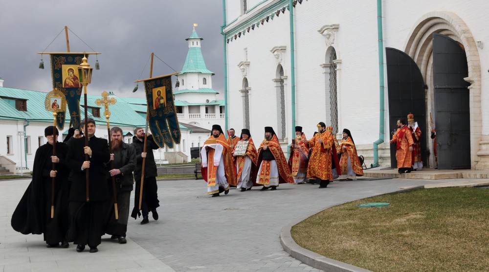 20 апреля 2020 года, в Светлый Понедельник, председатель Синодального отдела по монастырям и монашеству архиепископ Каширский Феогност возглавил Божественную литургию в Воскресенском Ново-Иерусалимском ставропигиальном мужском монастыре.