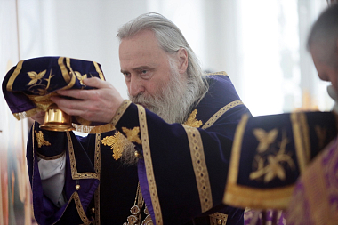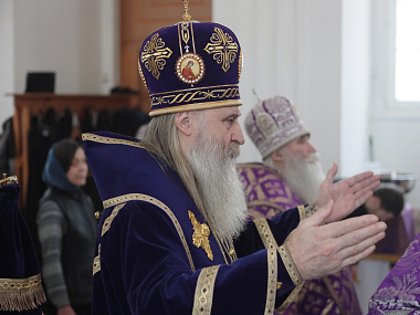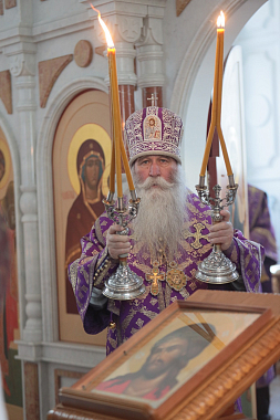 Затем Высокопреосвященнейший владыка Феогност передал епископу Феофилакту поздравление Святейшего Патриарха Московского и всея Руси Кирилла по случаю дня тезоименитства.