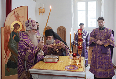В этот день Божественную литургию свт. Иоанна Златоуста в Троицком храме обители возглавил председатель Синодального отдела по монастырям и монашеству архиепископ Каширский Феогност.