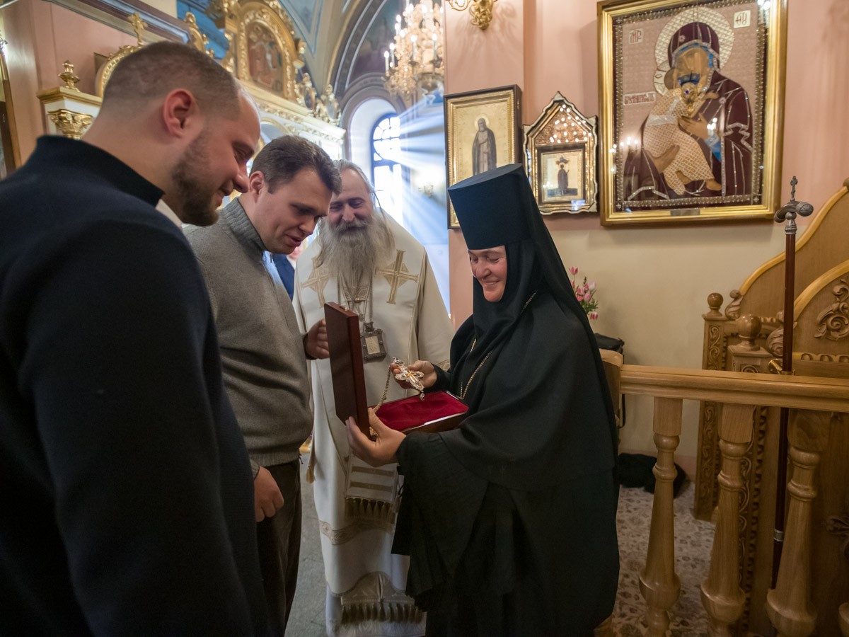 В дар матушке Феофании владыка Феогност преподнес наперсный крест.