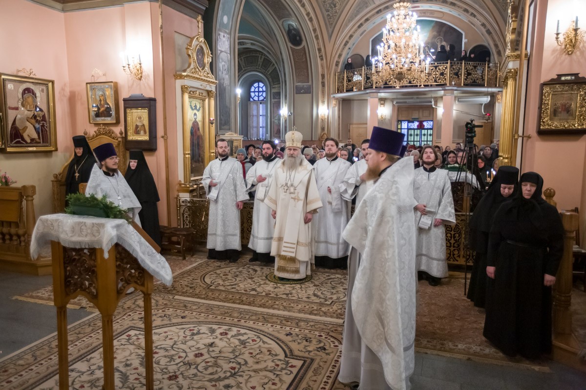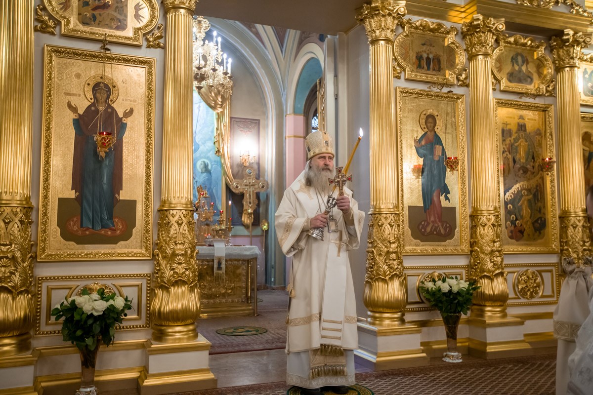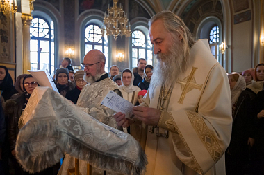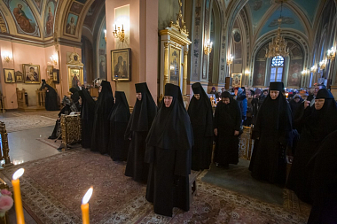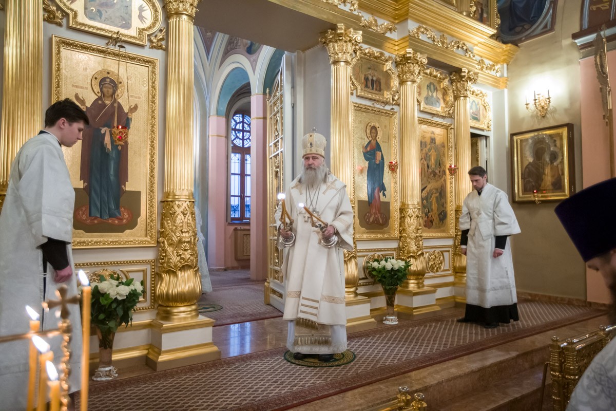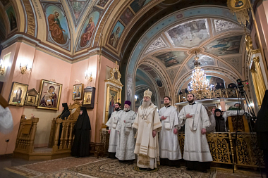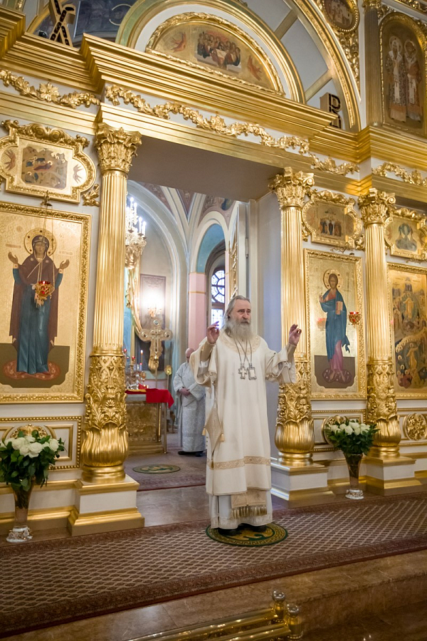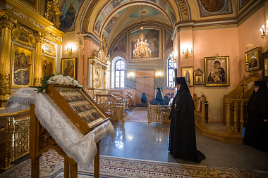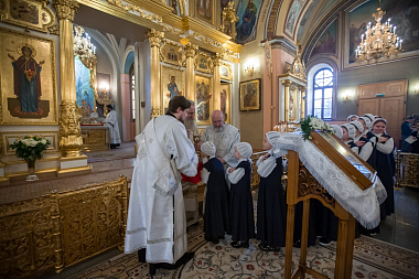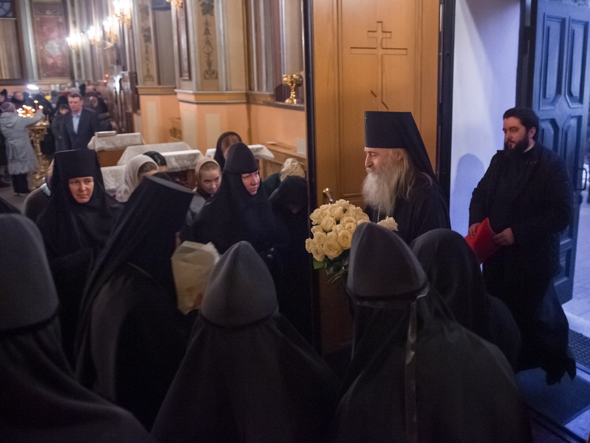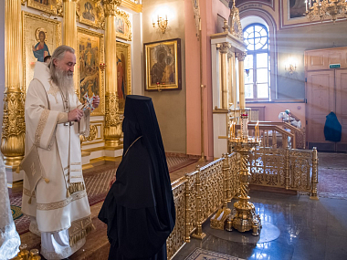 В этот день Божественную литургию в соборе Воскресения Словущего возглавил председатель Синодального отдела по монастырям и монашеству архиепископ Каширский Феогност.