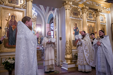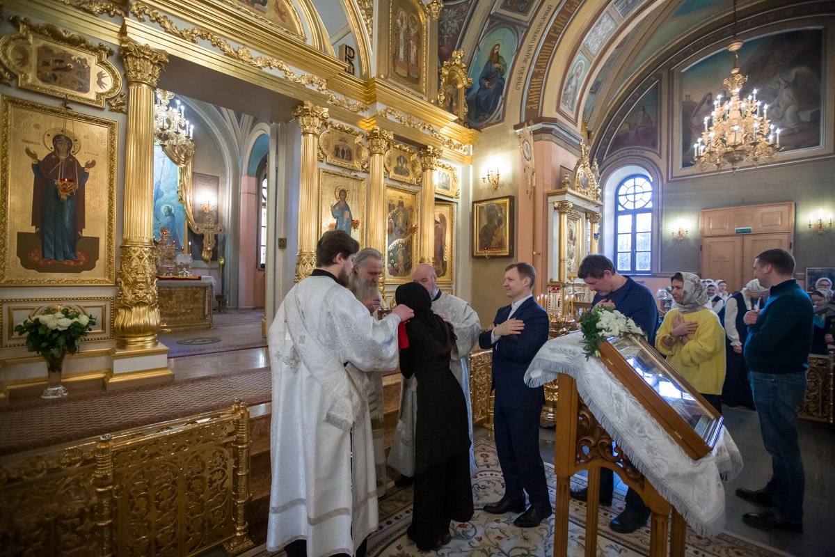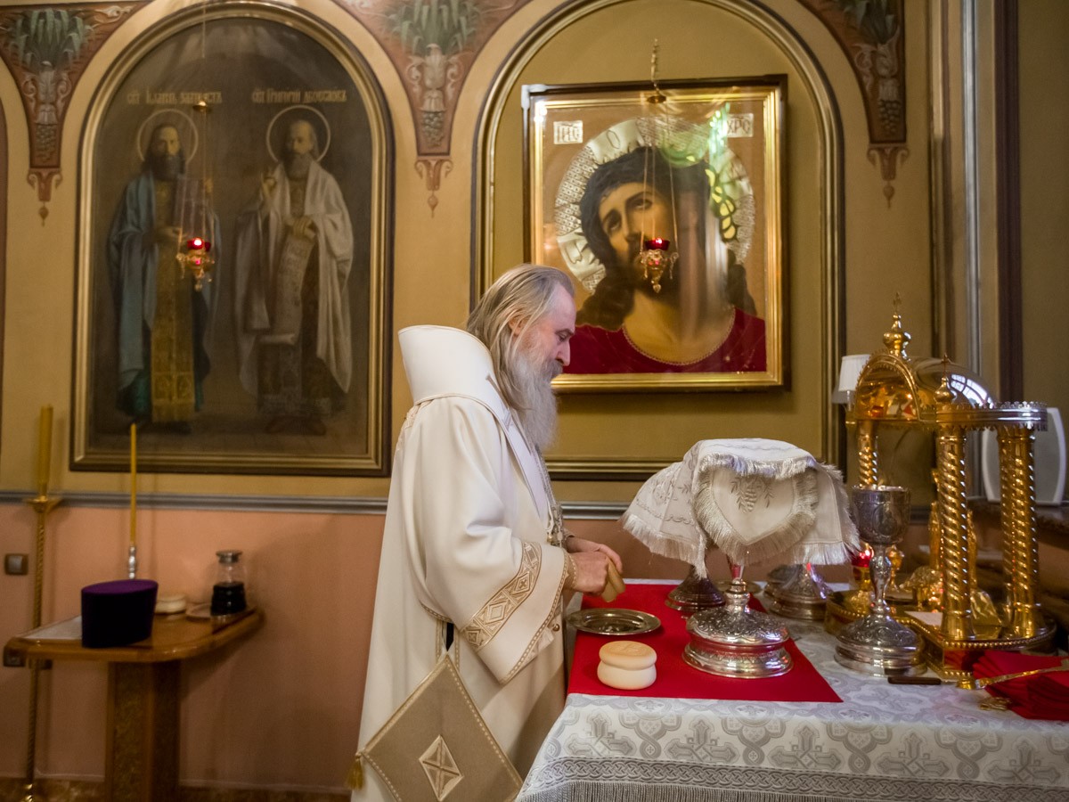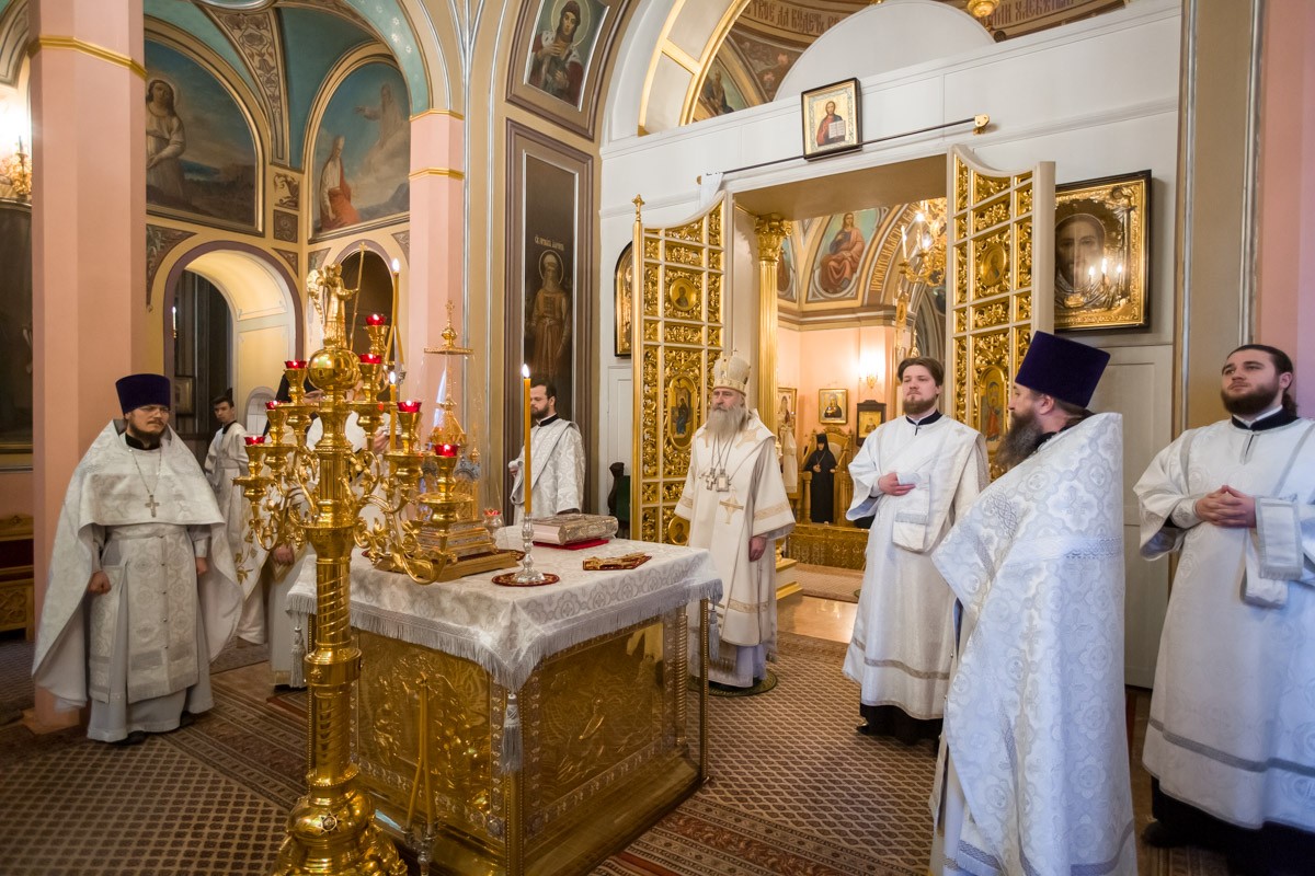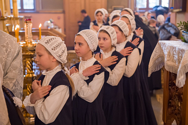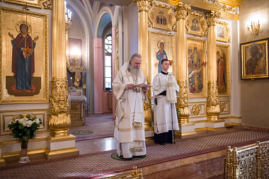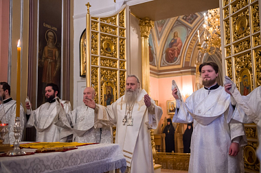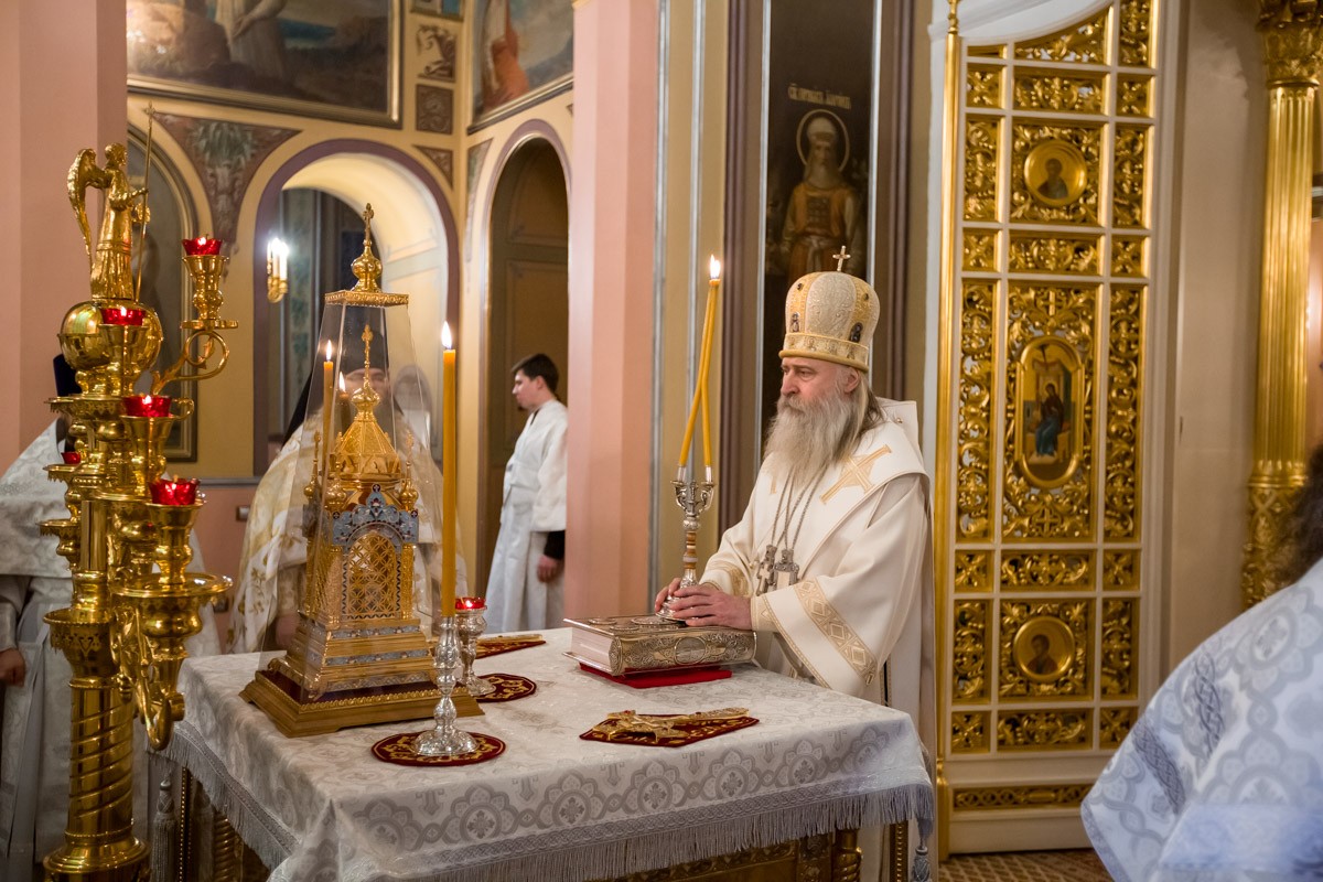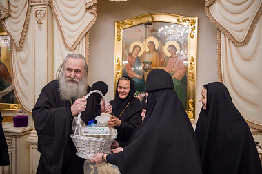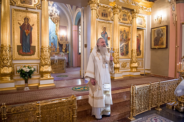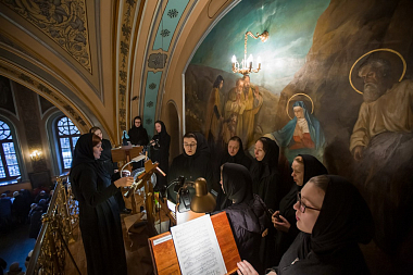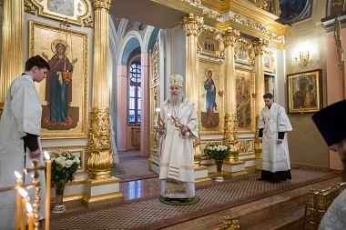 В этот день Божественную литургию в соборе Воскресения Словущего возглавил председатель Синодального отдела по монастырям и монашеству архиепископ Каширский Феогност.
