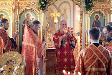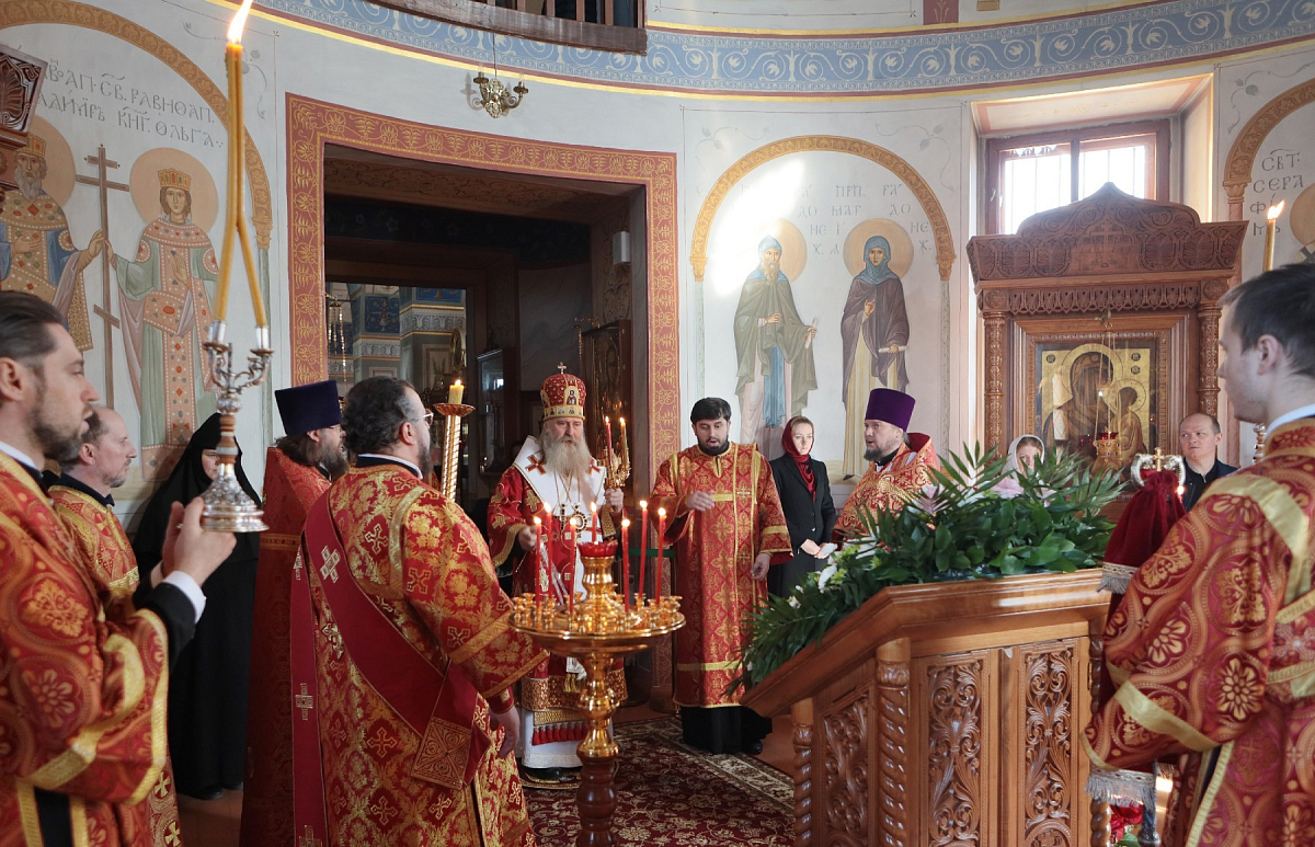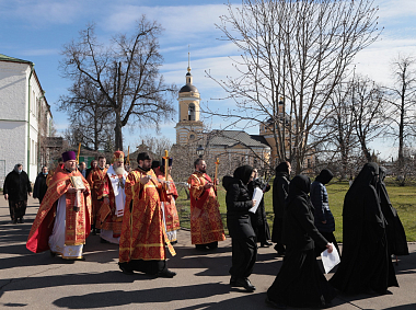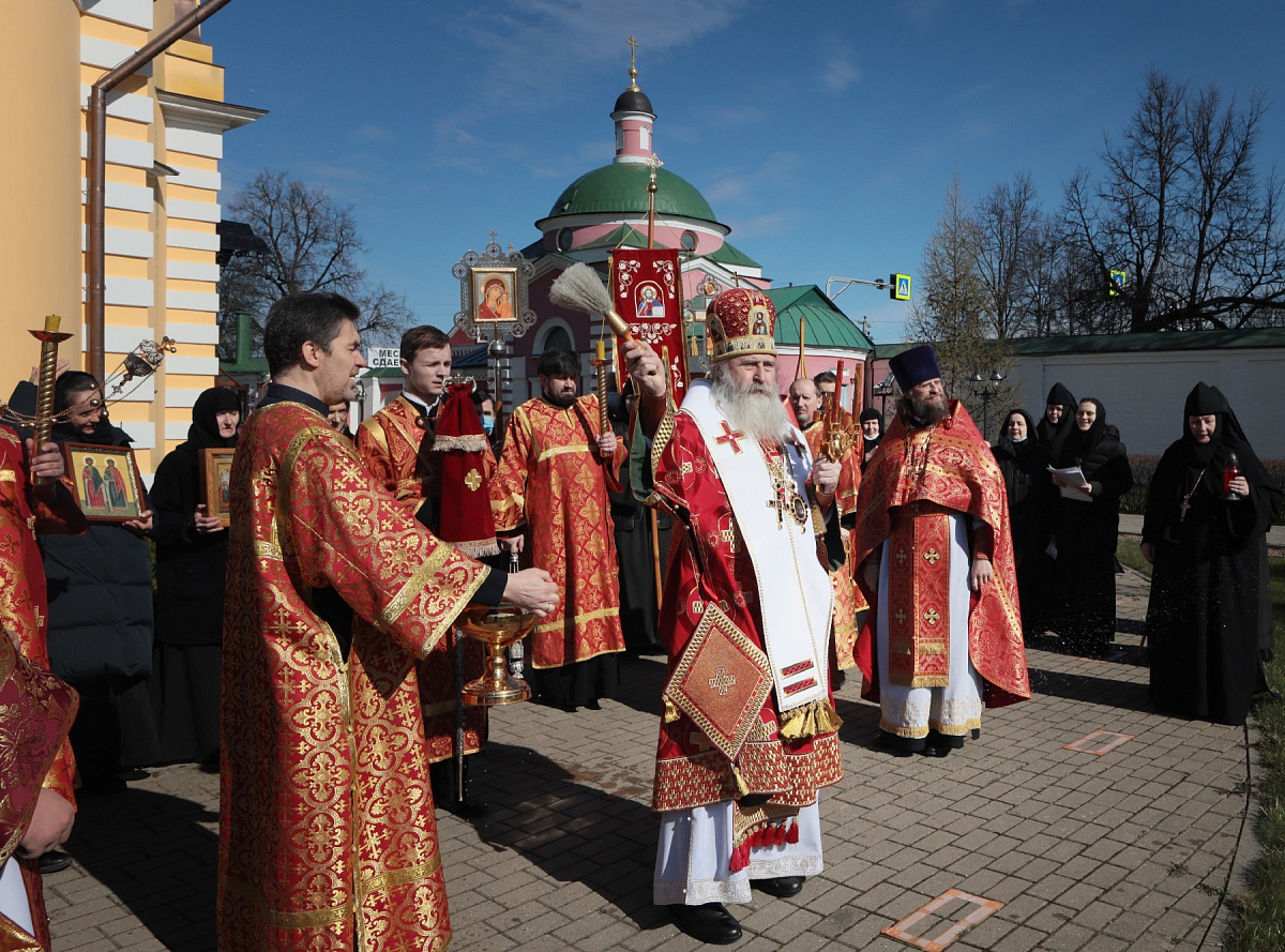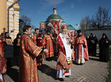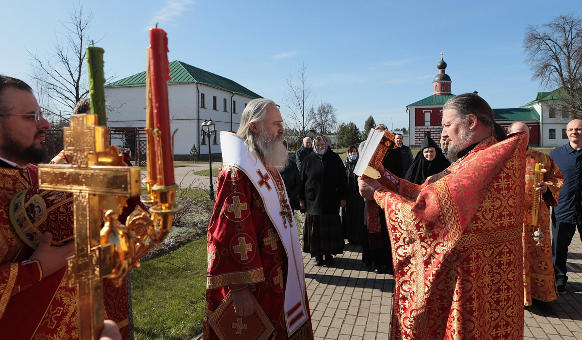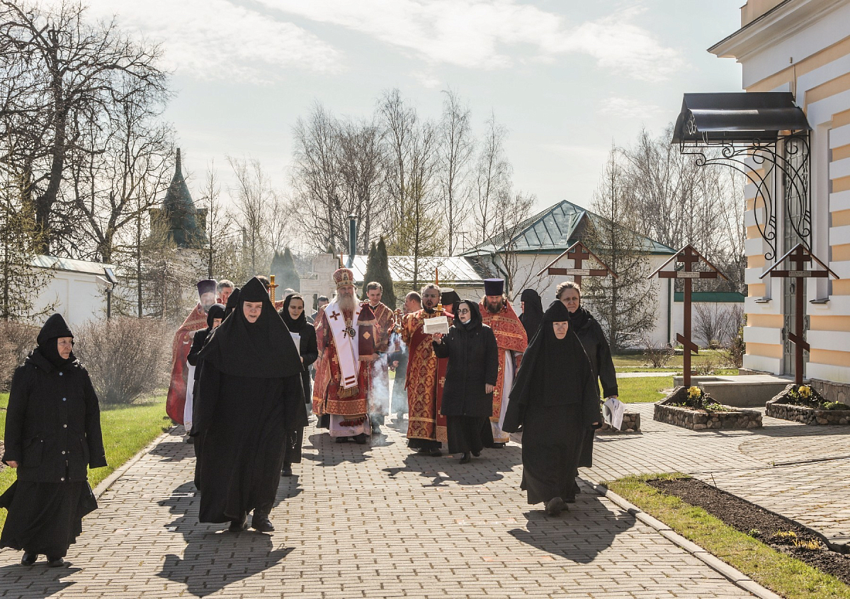 В этот день Божественную литургию пасхальным чином в Троицком соборе обители возглавил председатель Синодального отдела по монастырям и монашеству архиепископ Каширский Феогност.