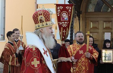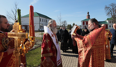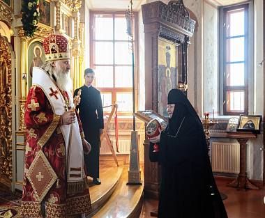 По окончании крестного хода Его Высокопреосвященство передал настоятельнице обители игумении Марии (Солодовниковой) поздравление Святейшего Патриарха Московского и всея Руси Кирилла по случаю 60-летия со дня рождения: