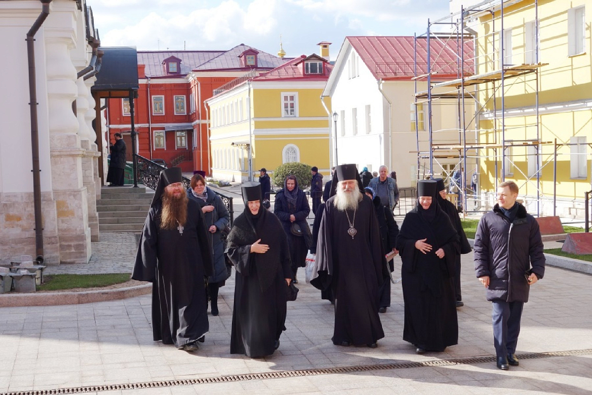 Его Высокопреосвященству сослужили заместитель председателя Синодального отдела по монастырям и монашеству архимандрит Стефан (Тараканов) и духовенство обители.