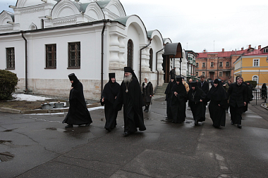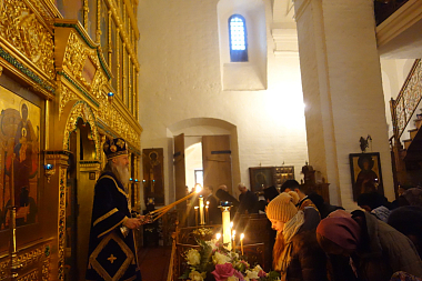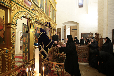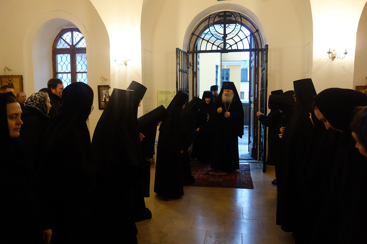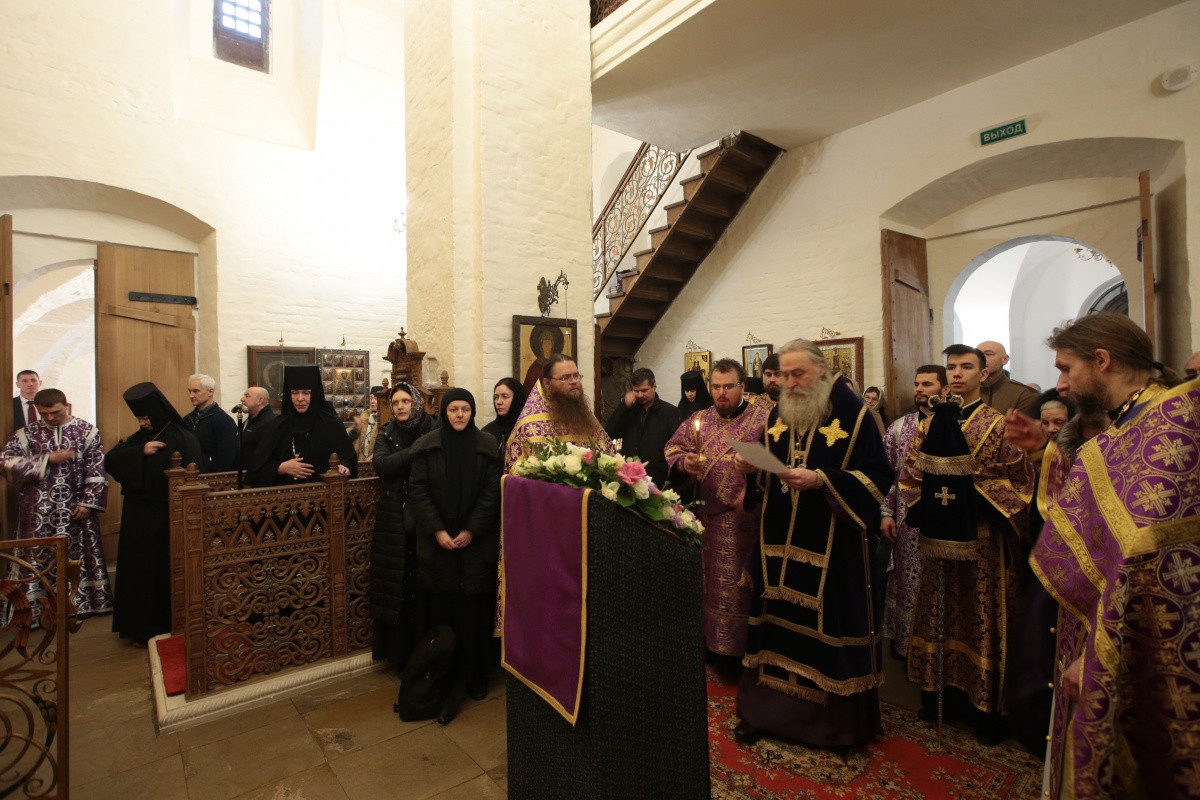 Его Высокопреосвященству сослужили заместитель председателя Синодального отдела по монастырям и монашеству, настоятель Московского подворья Свято-Троицкой Сергиевой лавры архимандрит Стефан (Тараканов) и духовенство обители.