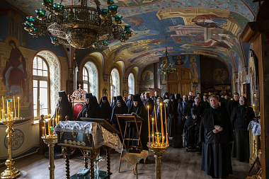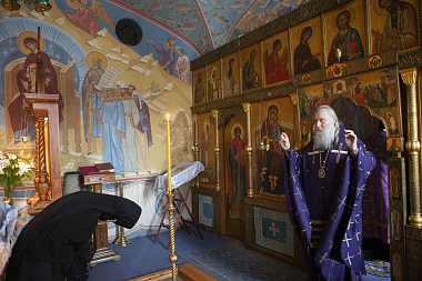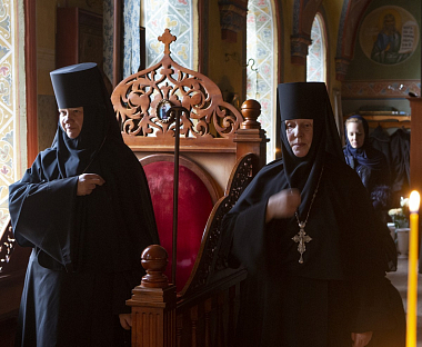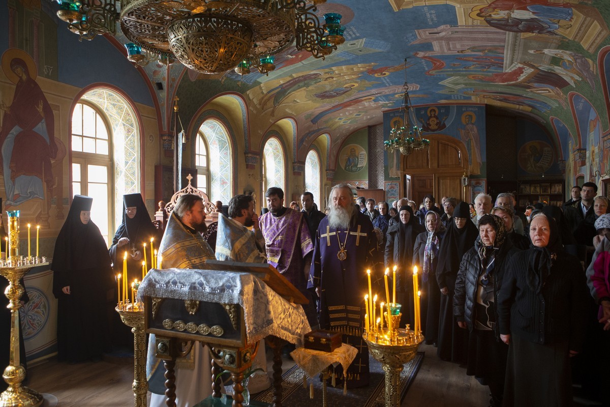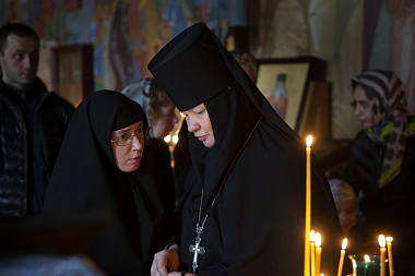 За богослужением возносились сугубые благодарственные прошения о здравии настоятельницы монастыря игумении Иулиании (Каледы) по случаю ее дня рождения и сестер обители.