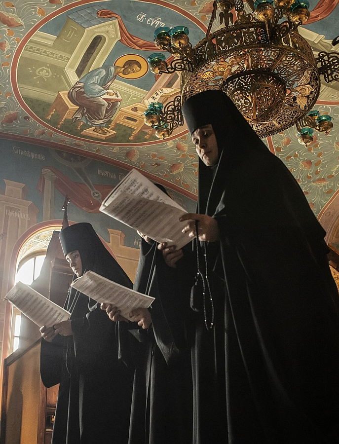 Церковные песнопения исполнил хор Зачатьевской обители.