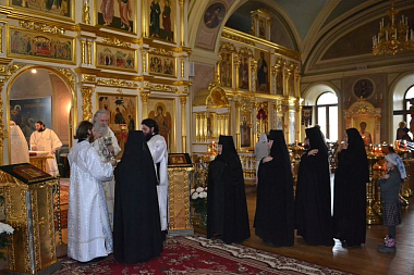 В этот день Божественную литургию в монастыре возглавил председатель Синодального отдела по монастырям и монашеству архиепископ Каширский Феогност.