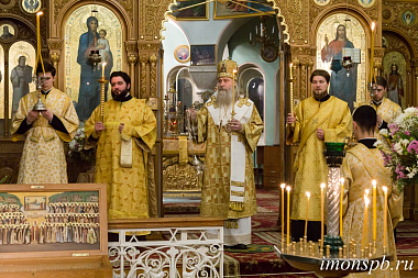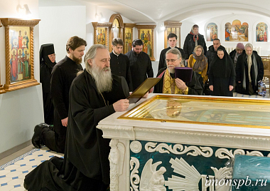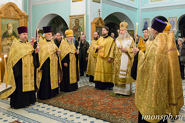 По окончании всенощного бдения владыка Феогност вместе со священнослужителями, матушкой игуменией, сестрами и прихожанами спустился в храм-усыпальницу святого праведного Иоанна Кронштадтского, где прочитал молитву святому.