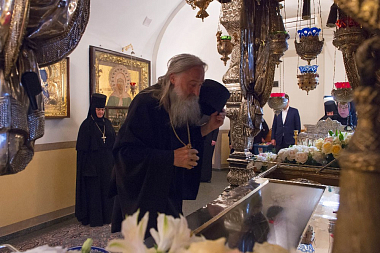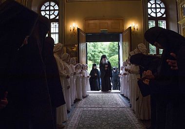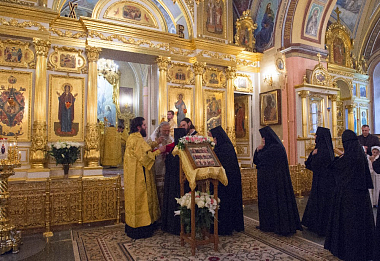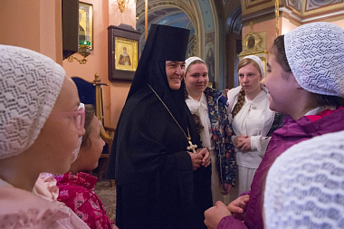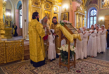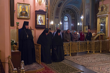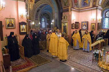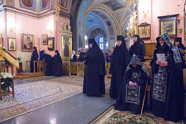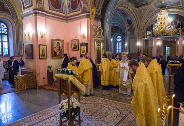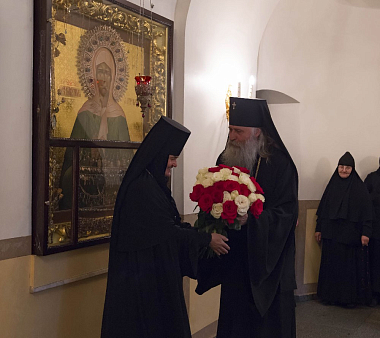 Его Высокопреосвященству сослужили клирики Покровской обители и братия Троице-Сергиевой лавры. За богослужением молились настоятельница Покровского монастыря игумения Феофания (Мискина) с сестрами, воспитанницы приюта Покровской обители и прихожане монастыря.