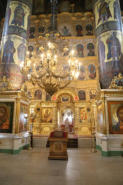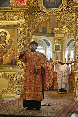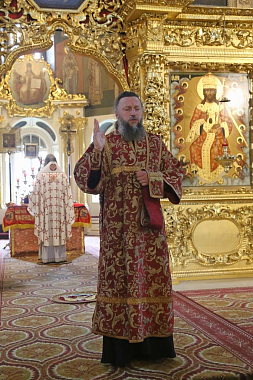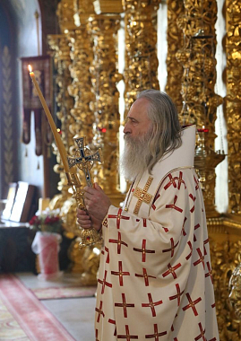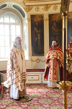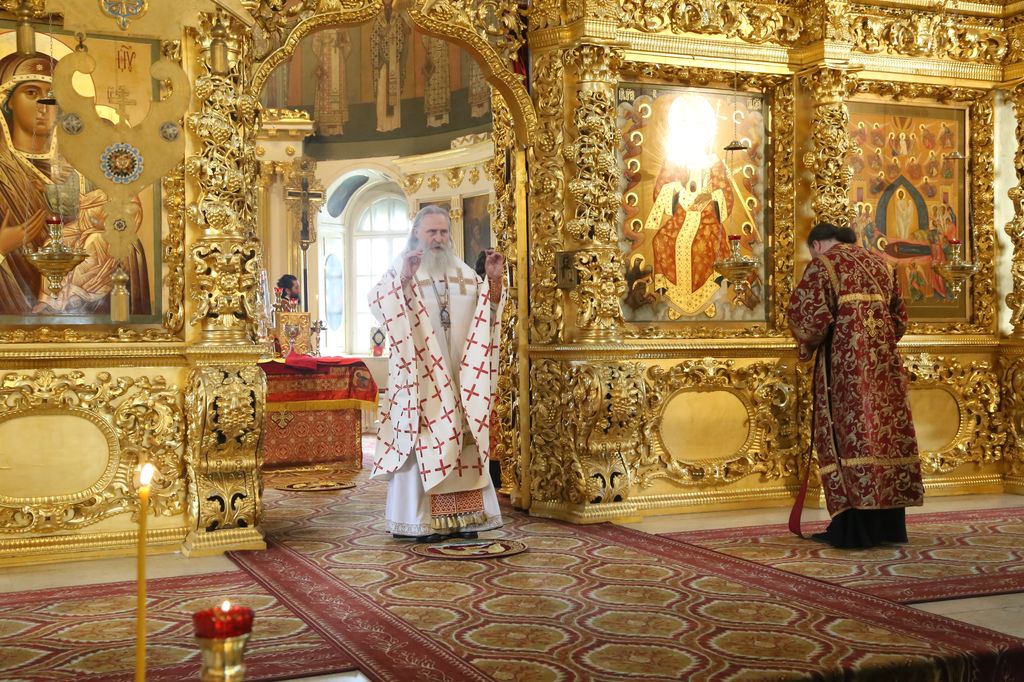 В монастырском соборе Успения Пресвятой Богородицы Его Высокопреосвященству сослужил наместник обители архимандрит Сергий (Воронков) с братией в священном сане.