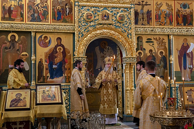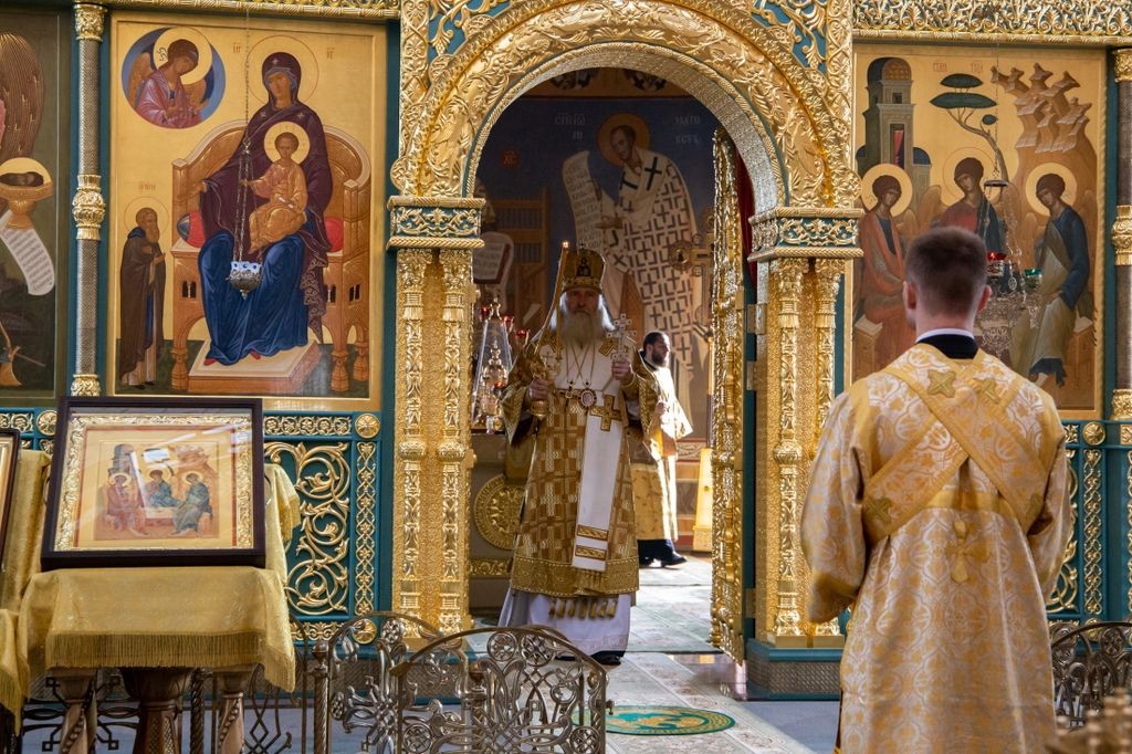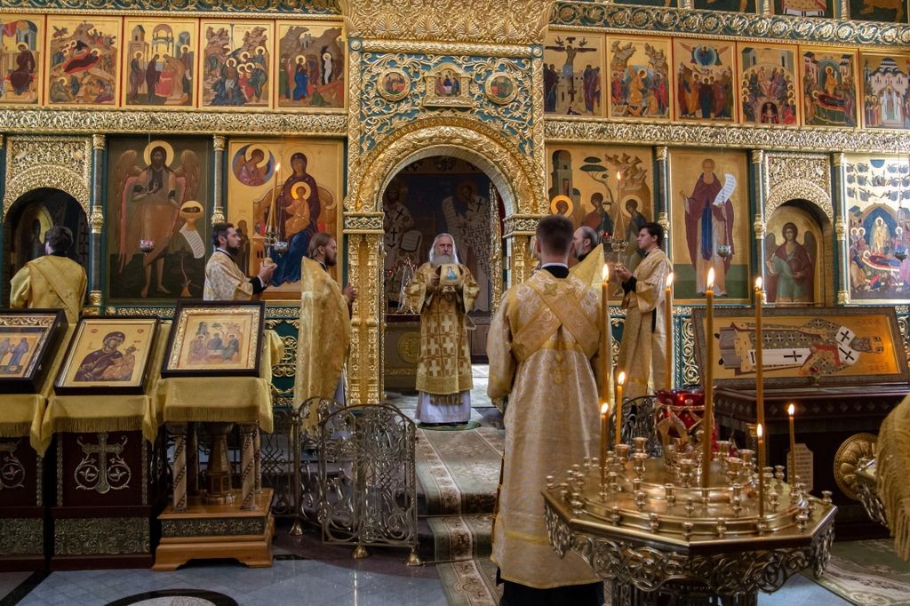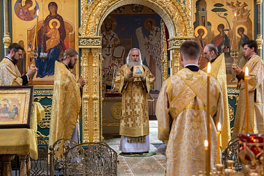 Его Высокопреосвященству сослужили клирики Стефано-Махрищской обители.