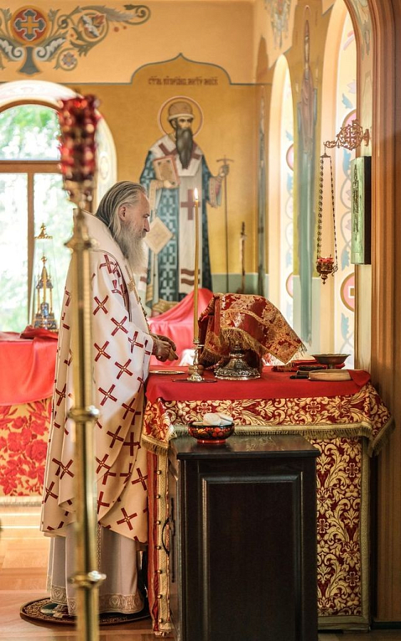 В домовом храме в честь святителей Московских в Митрополичьих палатах подворья Его Высокопреосвященству совершил Божественную литургию иерейским чином.