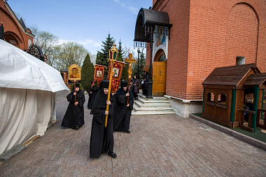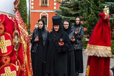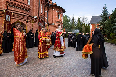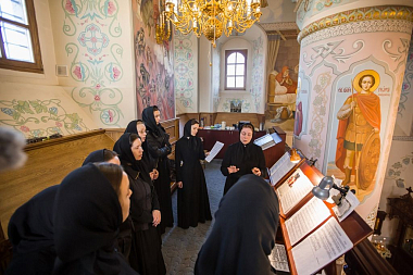 За богослужением молились настоятельница обители игумения Феофания (Мискина) с сестрами.