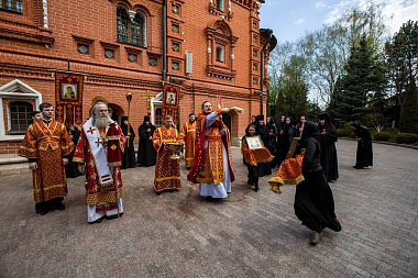 3 мая 2020 года, в Неделю 3-ю по Пасхе, праздник святых жен-мироносиц, председатель Синодального отдела по монастырям и монашеству архиепископ Каширский Феогност совершил Божественную литургию на подворье Покровского ставропигиального женского монастыря в с. Марково.