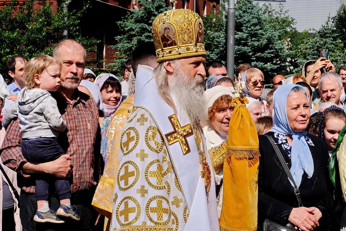 По окончании богослужения состоялся праздничный крестный ход, в котором приняли участие архиепископ Феогност, игумения Ксения с сестрами, духовенство обители, прихожане и паломники.