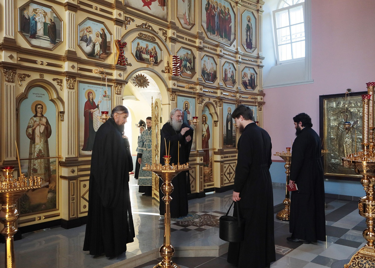 В Боголюбском храме киновии Гефсиманского скита Его Высокопреосвященству сослужили его настоятель архимандрит Дамиан (Швецов) с братией в священном сане.